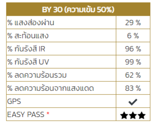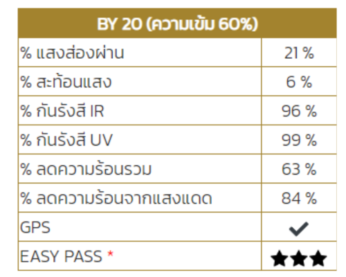 การเลือกติดฟิล์มกรองแสงชนิดกันร้อน ไม่เพียงแต่จะพิจารณาถึงคุณสมบัติของตัวฟิล์มเท่านั้น แต่ยังต้องพิจารณาความเข้มที่เหมาะสมเพื่อรองรับทัศนวิสัยขณะขับขี่ด้วย โดยฟิล์มรุ่น Super Hi-Kool BEYOND CERAMIC มาพร้อมกับความเข้ม 4 ระดับ ดังนี้