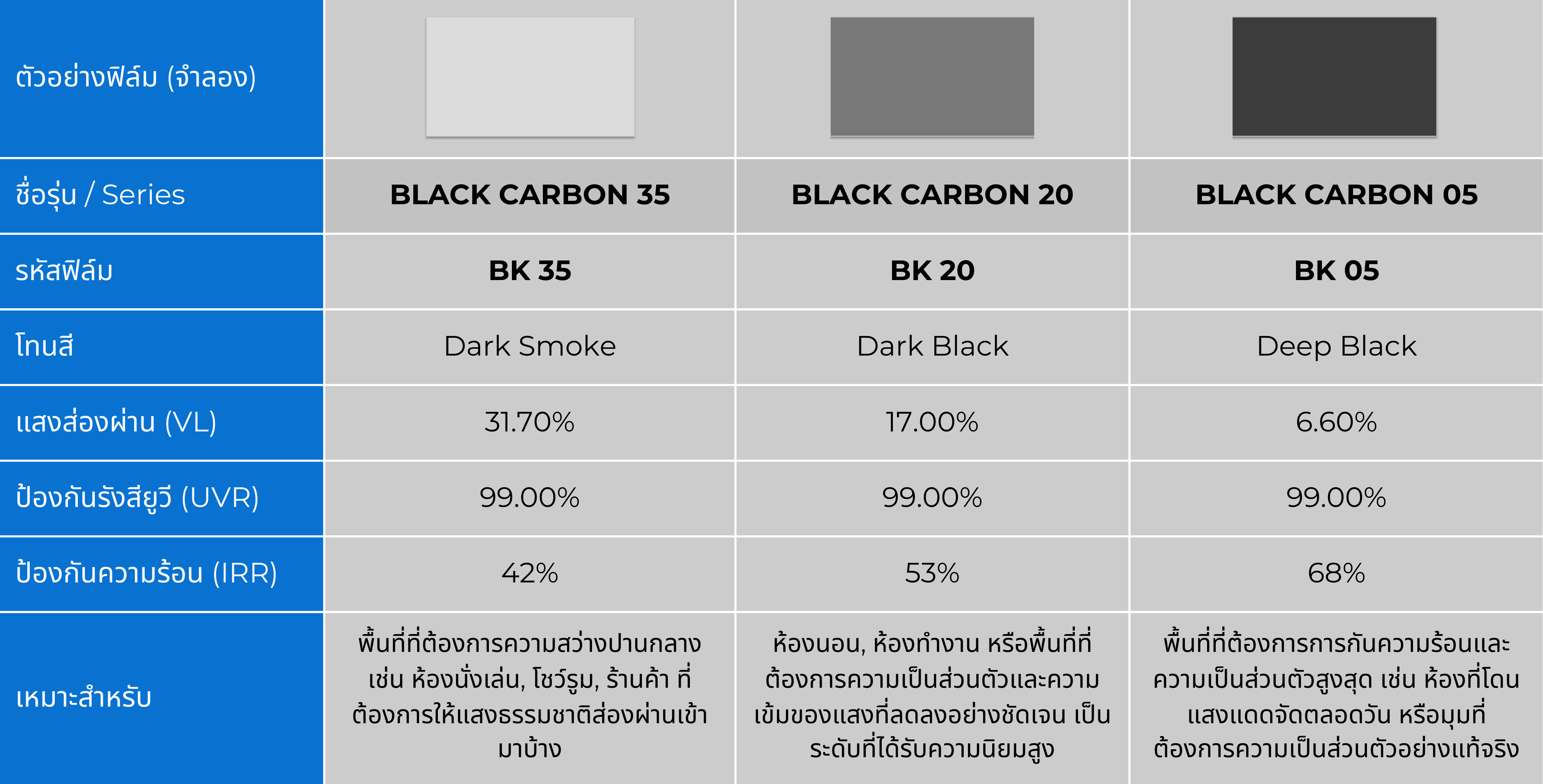 คุณสมบัติเด่นของฟิล์ม BLACK CARBON SERIES